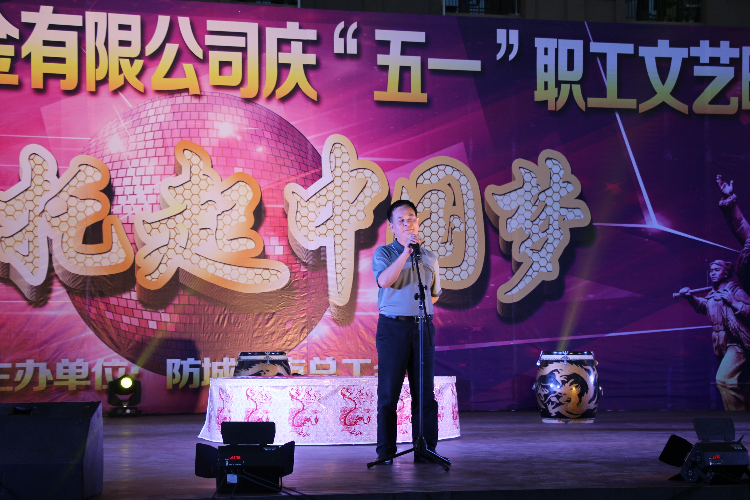 防城港市總工會(huì)黨組書記、副主席陳雪山,公司常務(wù)副總經(jīng)理陳亮等領(lǐng)導(dǎo)到現(xiàn)場(chǎng)觀看了演出并為榮獲先進(jìn)集體和先進(jìn)個(gè)人頒獎(jiǎng)。演出開始前,市總工會(huì)陳雪山書記、公司陳亮副總均發(fā)表了熱情洋溢的歡迎詞,倡導(dǎo)職工大力弘揚(yáng)大力弘揚(yáng)勞模精神,勉勵(lì)職工奮發(fā)向上,并向參加活動(dòng)的先進(jìn)集體、先進(jìn)個(gè)人和一線職工致以節(jié)日的祝福。