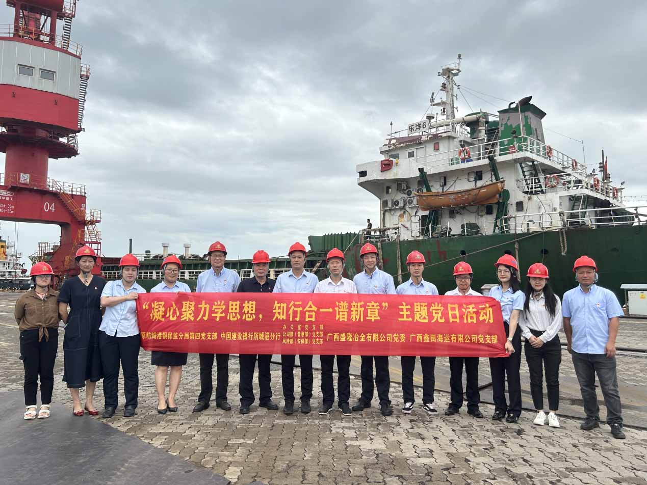 8月26日,廣西盛隆冶金有限公司黨委,原防城港銀保監(jiān)分局第四黨支部,中國建設(shè)銀行防城港分行辦公室、公司部、風(fēng)險(xiǎn)部黨支部,廣西鑫田海運(yùn)有限公司黨支部,為深入學(xué)習(xí)貫徹習(xí)近平新時(shí)代中國特色社會(huì)主義思想,牢牢把握“學(xué)思想、強(qiáng)黨性、重實(shí)踐、建新功”總要求,堅(jiān)持以學(xué)鑄魂、以學(xué)增智、以學(xué)正風(fēng)、以學(xué)促干,更好服務(wù)西部陸海新通道建設(shè),促進(jìn)北部灣國際門戶港高質(zhì)量發(fā)展,聯(lián)合開展“凝心聚力學(xué)思想,知行合一譜新章”主題黨日活動(dòng),并參觀了盛隆碼頭公司。